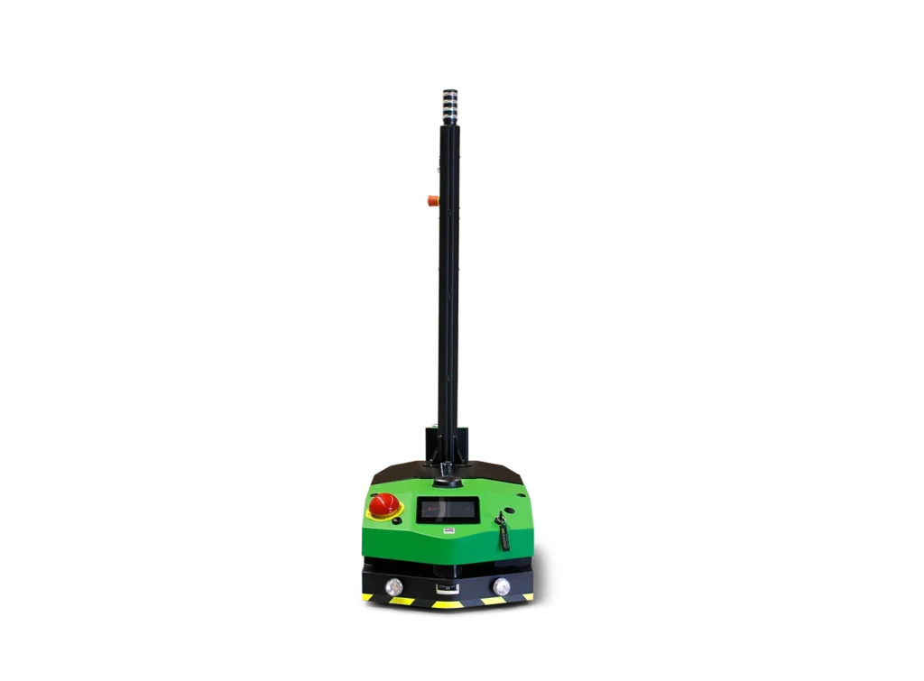 Der AA1000-S-Guided ist ein mittelgroßes, automatisch betriebenes Fahrzeug, das vollständig autonom einer optischen Route folgen kann.
