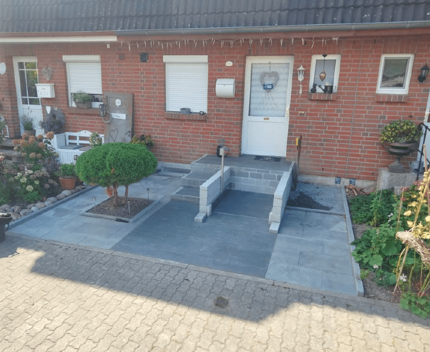 Unser Privatkunde aus Norddeutschland stand vor einem sehr großen Problem. Der Eingangsbereich seines Hauses war durch die vorhandenen Treppenstufen z. B beim Einkauf von Getränkekisten nur sehr beschwerlich nutzbar.Ein Umbau des Eingangsbereiches, z. B. mit einer Auffahrrampe oder niedrigeren Treppenstufen war zu aufwendig und auch zu teuer. Nach vielen Überlegungen kam die Idee auf, ob nicht ein Hubtisch eingesetzt werden könnte.